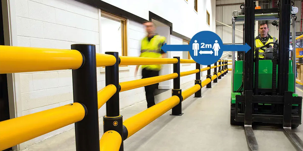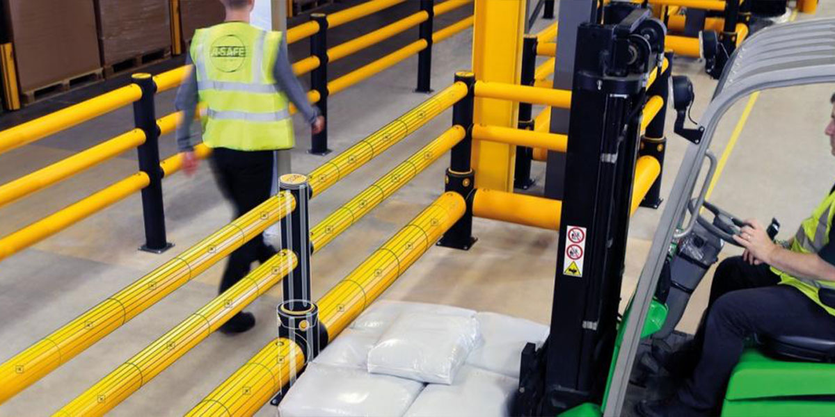 Beskytt bygninger, maskiner og utstyr mot påkjøringsskader med robuste polymerbarrierer for gaffeltruck.