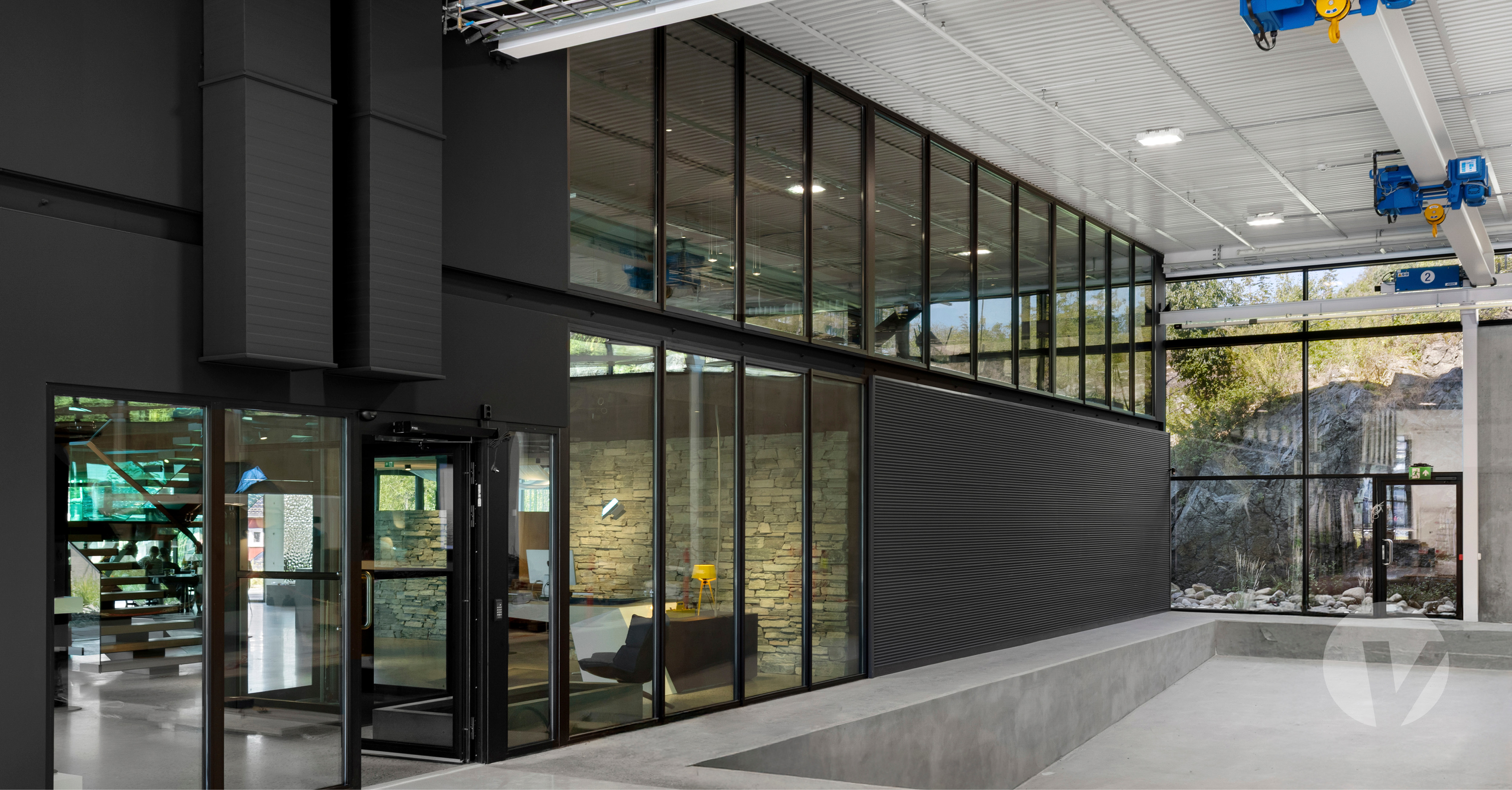 Vetrotech Nordic & Baltic har leveret CONTRAFLAM EI30 oppbygget som ett isolerglass med Parsol Grønn Securit. Disse unike glassene med den grønne fargen gjør løsningen til en del av bygningens arkitektur.