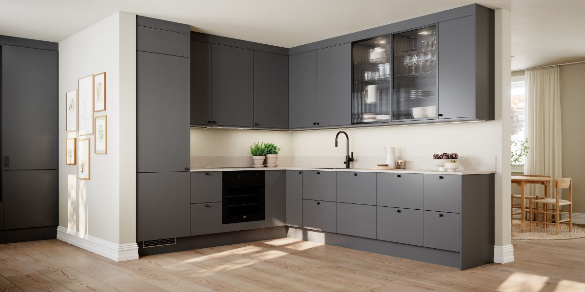 Dype nøytrale gråtoner oppleves luksuriøse uten å virke prangende. På kjøkkenfronter gir dette en arkitektonisk og stram look. Perfekt for et kjøkken som skal føles raffinert, men ikke mørkt og tungt.