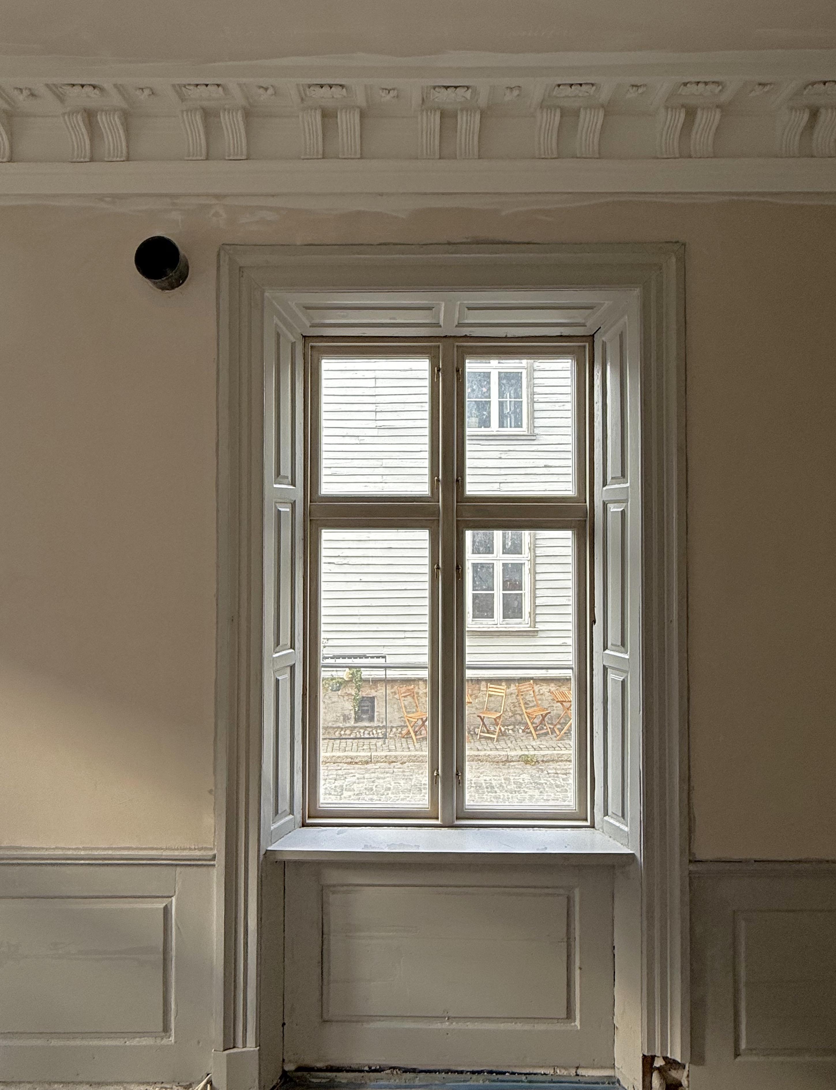 Det er utfordrende å kombinere moderne ventilasjon med kravet om uendret fasade. Løsningen ble LUNOS desentral ventilasjon i samtlige leiligheter. Med spesialdesignede rister ble fasaden tilbakeført til opprinnelig arkitektonisk uttrykk.