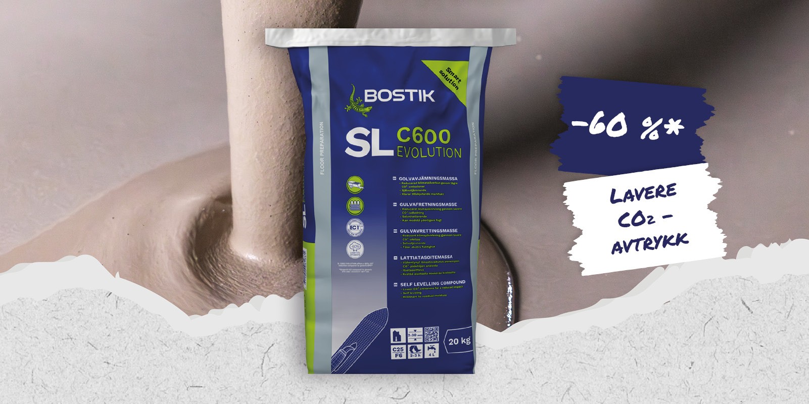 Bostiks nyeste produktnyhet SL C600 EVOLUTION er en selvutjevnende og multifunksjonell gulvavrettingsmasse med svært gode flytegenskaper. SL C600 EVOLUTION er basert på to forskjellige typer sement med redusert klimaavtrykk, som gir en betydelig reduksjon av karbondioksidutslipp – 60 % lavere enn generisk EPD*. Produksjonsprosessen for SL C600 EVOLUTION er nesten karbondioksidnøytral ettersom fabrikken er 100 % drevet av havbasert vindkraft fra Lindø havn i Danmark. Med sine lave TVOC-nivåer oppnår produktet den høyeste utslippsklassifiseringen EC1+.