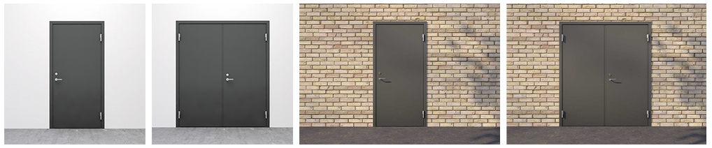 Vi kan levere grunnede, varmforsinkede, rustfrie og syrefaste dører, og dører som tåler eksplosjon, trykk, sug, gass og EMP. Våre ytterdører i stål er CE-merket iht. SS-EN 14351-1. Våre branndører kan leveres iht. SS-EN 16034 og SS-EN 14351-1 klassifisering. Branndørene har blitt grundig testet og godkjent i henhold til gjeldende forskrifter.
