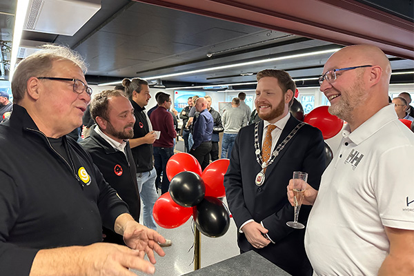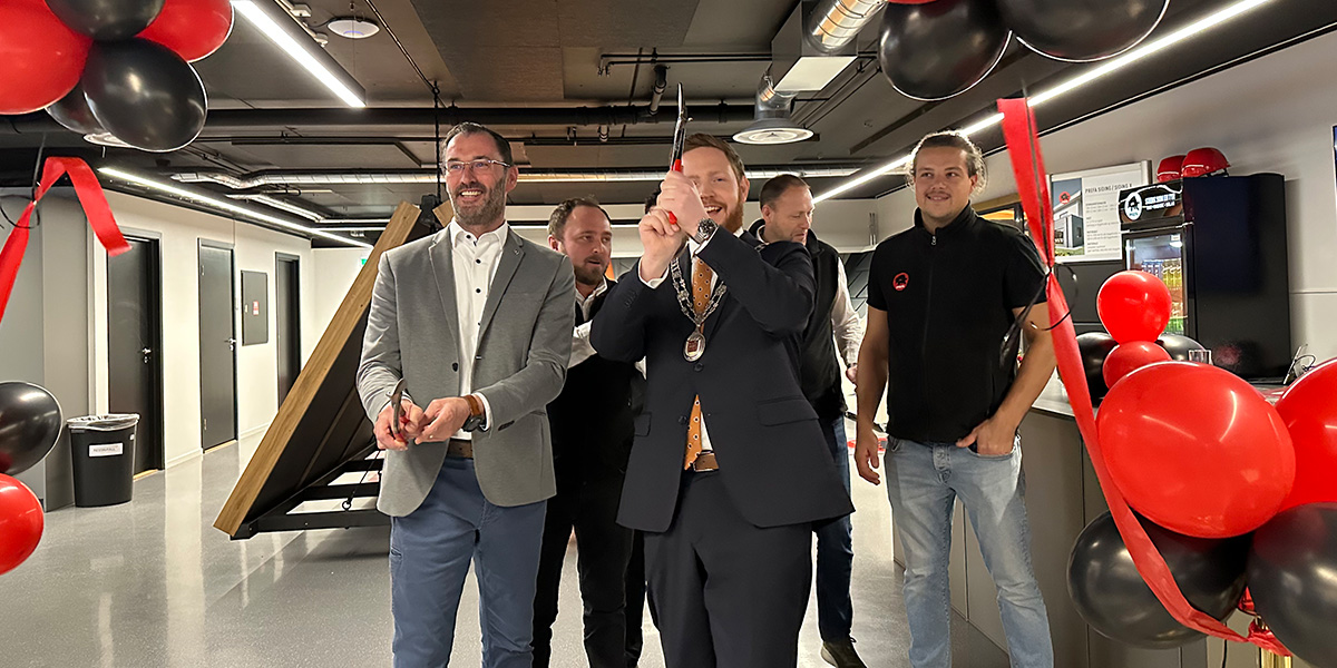 Under åpningen klippet Skiens ordfører, Marius Roheim Aarvold, og PREFA sin tekniske sjef, Berthold Ruck, det røde båndet – selvfølgelig med en pelikansaks. Etter en varm velkomst ble det holdt taler av Berthold Ruck, Tommy Thovsland, Thomas Nilsen og representanter fra bransjeorganisasjonen VBL. Deretter ble stemningen toppet med en skikkelig champagne-markering.