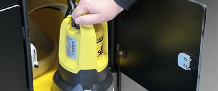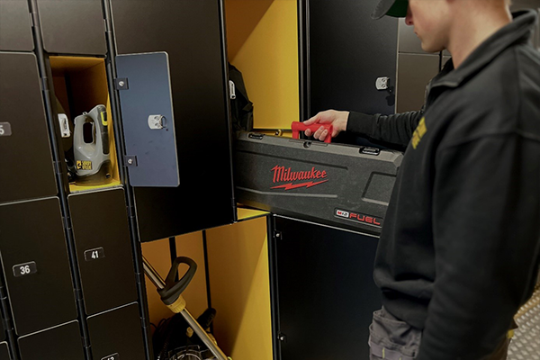 Tilgangen til lånt verktøy er sikret med elektronisk låssystem.