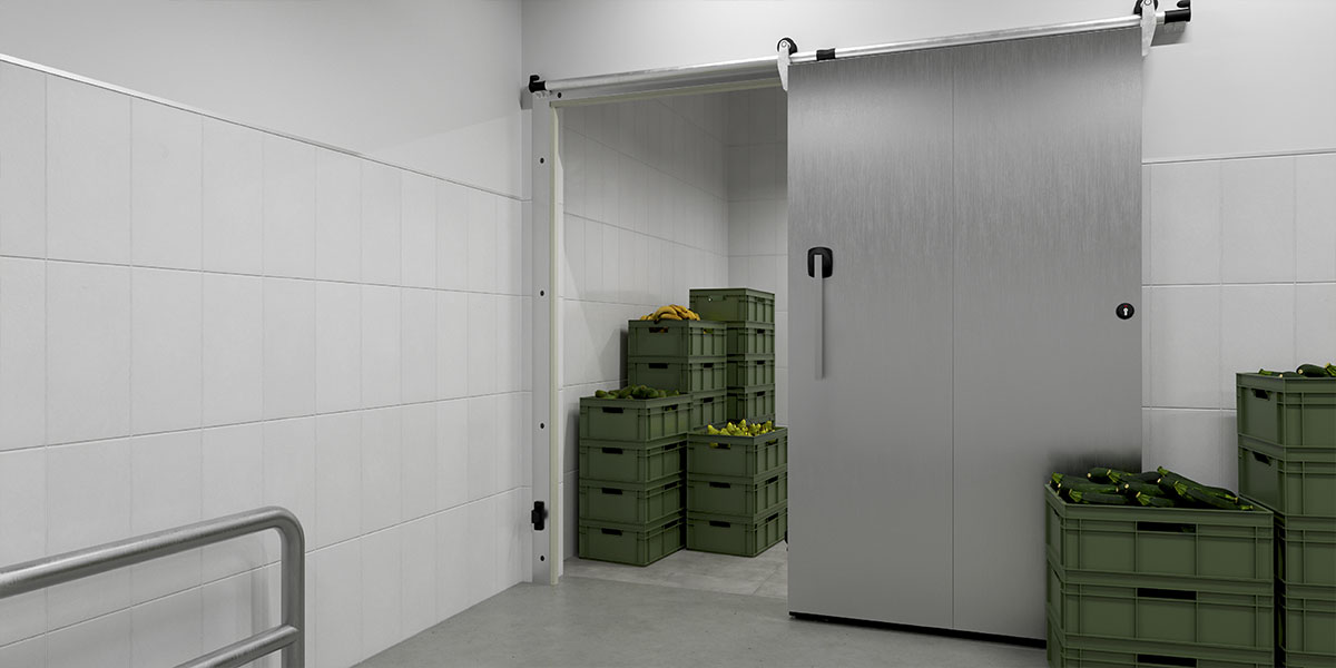 For fryserom med temperaturer ned til –28 °C, tilbyr vi våre robuste HID-120 dører og HIS-120 skyvedører, som har et 120 mm tykt dørblad fylt med PU for å sikre effektiv isolasjon.