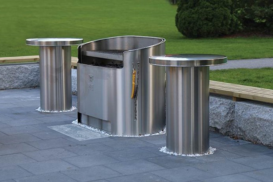 Grillen er produsert i 2 mm rustfritt stål (syrefast AISI 316) med selve grillristen i 3 mm rustfritt stål. Grillen leveres med betongfundament som monteres under bakkenivå.