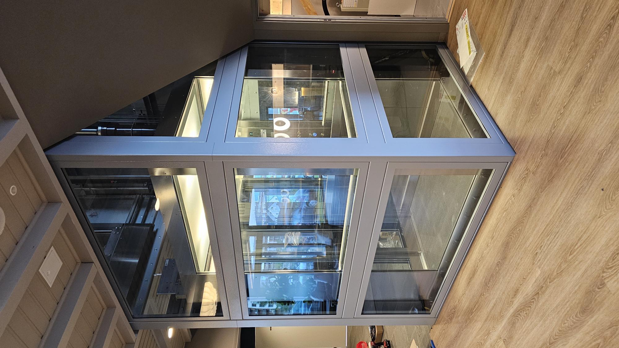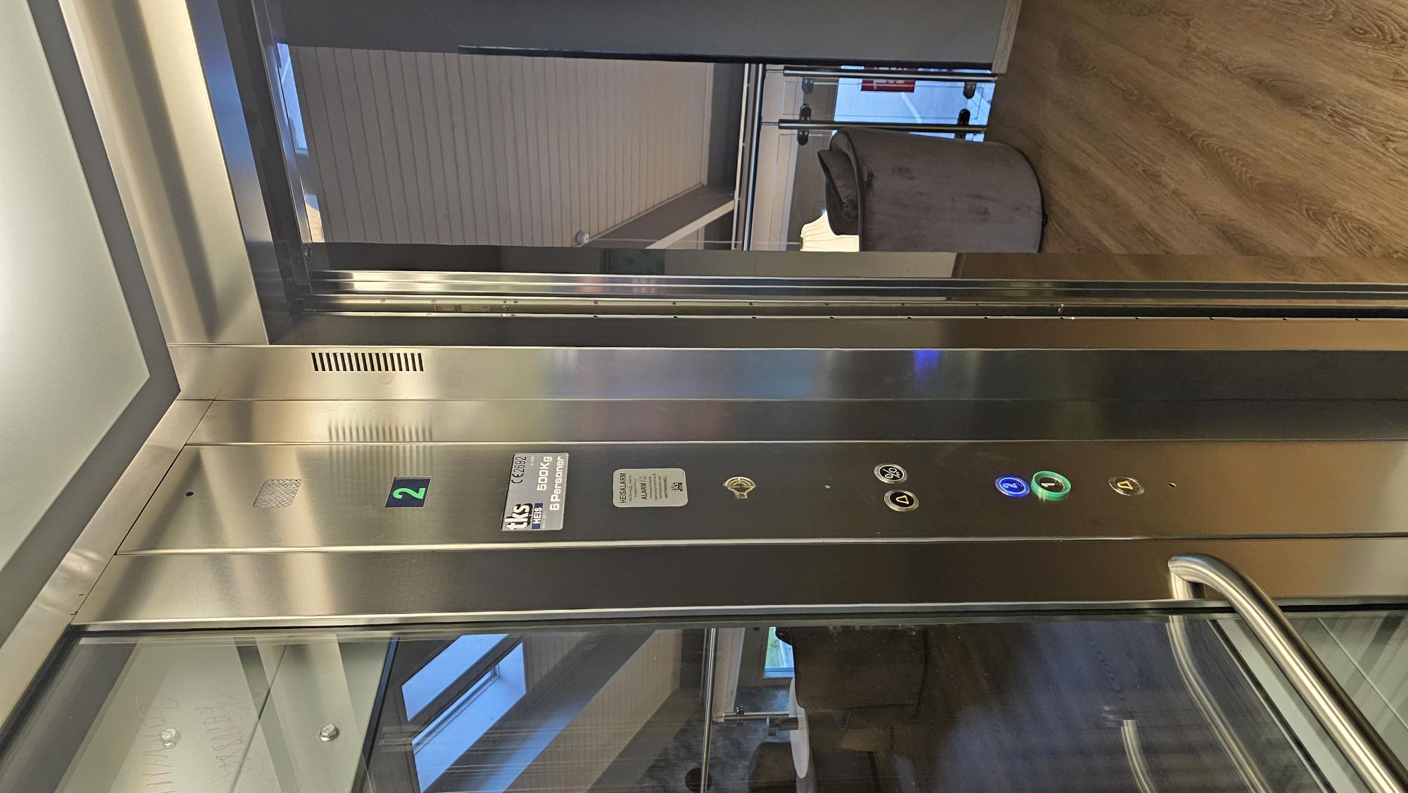 Nyttelast 500kg. Hastighet 0,15m/s. Antall etasjer 2-8.