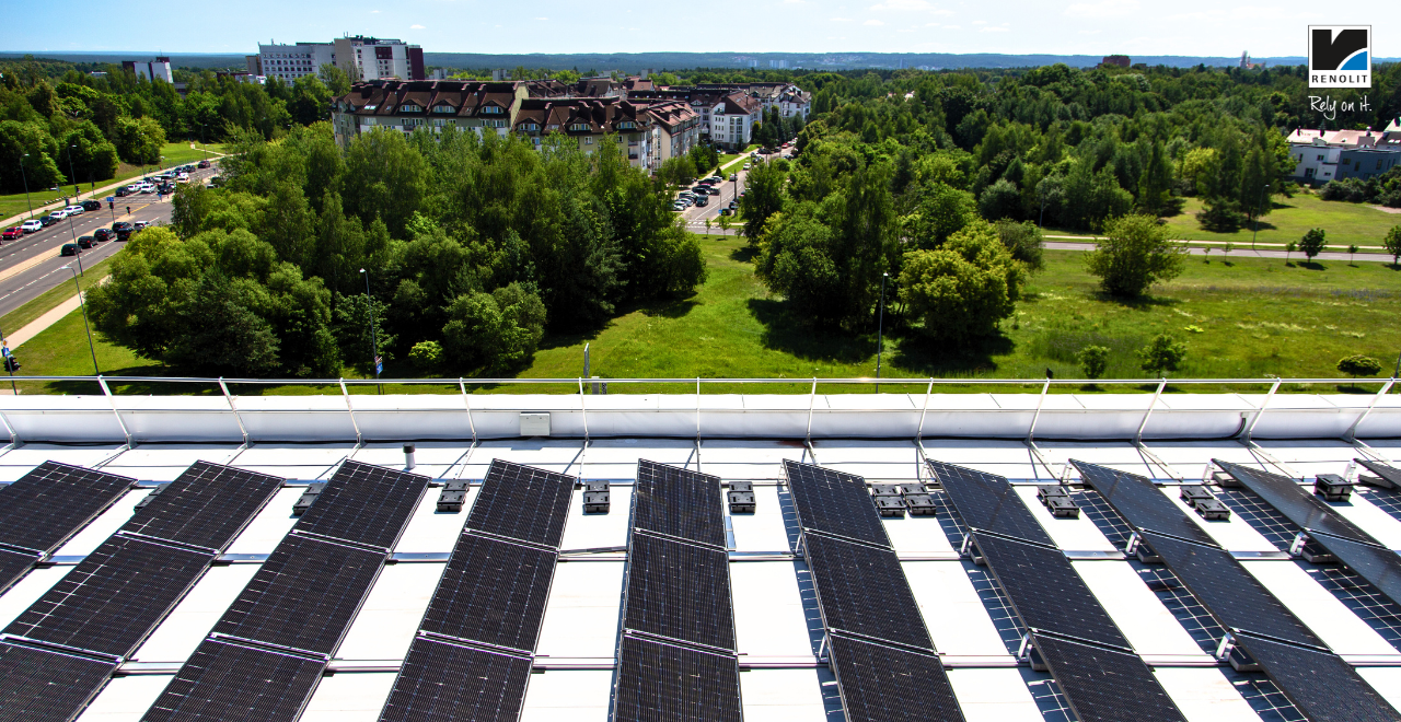 RENOLIT ALKORPLAN Solar og RENOLIT ALKORPLAN Bright er den perfekte kombinasjonen for tak med integrerte solcellepaneler – uten å gå på kompromiss med tetthet eller estetikk.
