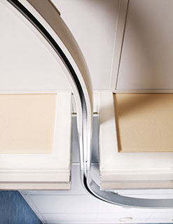 Molift enkelt skinne, rett eller kurvet, kan enkelt integreres på en svært estetisk måte. Slik tilpasses skinnesystemet til rommets design og arkitektur, en meget diskret plassering som gir samme høye kvalitet og driftsikkerhet.