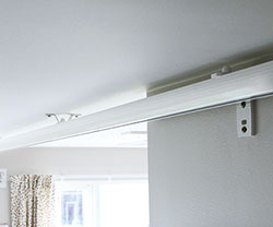 I rom hvor det er vanskelig å montere skinne i taket, kan skinne monteres på vegg. En unik Molift løsning for travers system.