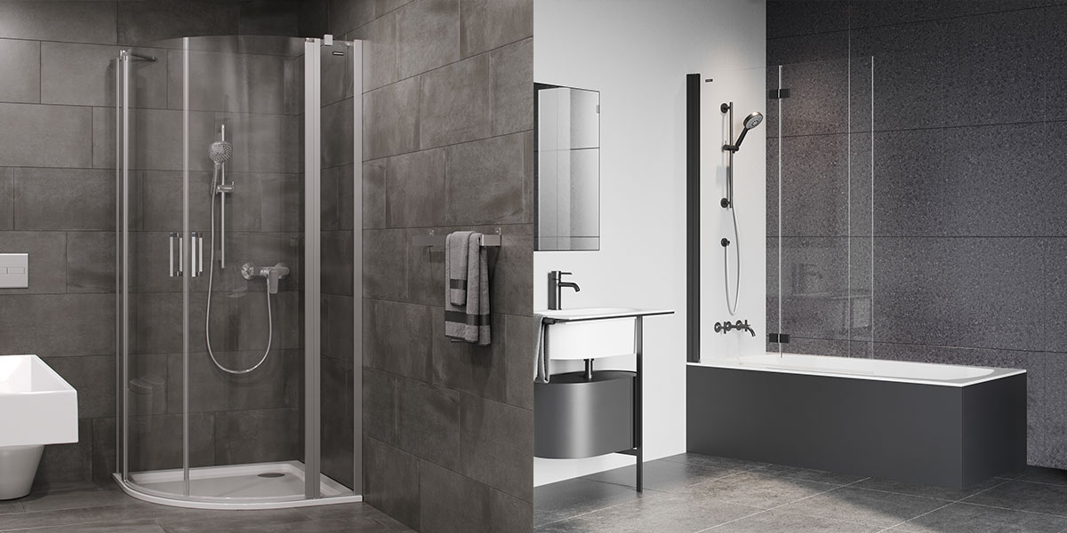 Allegra 2 gir mer gjennomsiktighet og letthet i baderomsdesignet. Dette er mulig ved å redusere profilmassen med nesten halvparten og den innovative bredde-hellingsutjevningen på 20-40 mm, avhengig av modell. Tre forskjellige profilfarger lover allsidige designalternativer. Du kan velge mellom: Sølv Matt, Sølv Blank, Sort Matt som kan kombineres med de to edle hengselfargene i Krom Blank og Sort Matt.