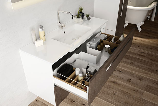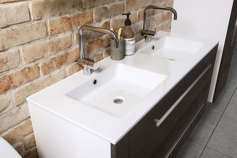 Trio leverast i fleire ulike breidde, og ein kan velje mellom fleire servantar i Evermite og porselen. Trio kan kombinerast med alle speil i vår kolleksjon.