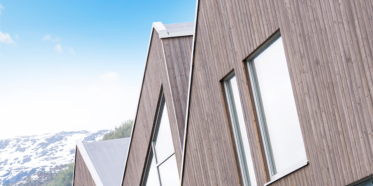 MøreRoyal kledning imiterer naturens egen fargepalett og skaper lune, varme fasader på både små og store bygg.