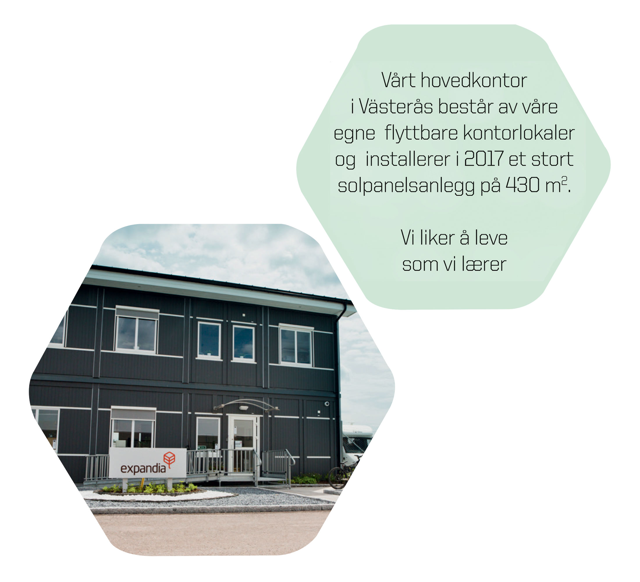 Expandias paviljonger varmes opp med el eller vannbåren varme. Uansett oppvarmingsmåte så er energiforbruket for lokalene det samme.