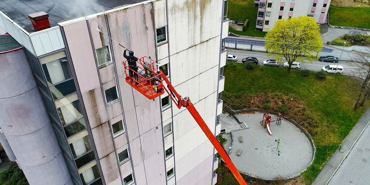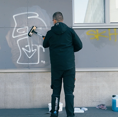 Graffiti fjernes enkelt fra Stenis fasadeplater – uten behov for utskiftning eller spesialbehandling. Det gir lavere vedlikeholdskostnader og bedre totaløkonomi over tid.