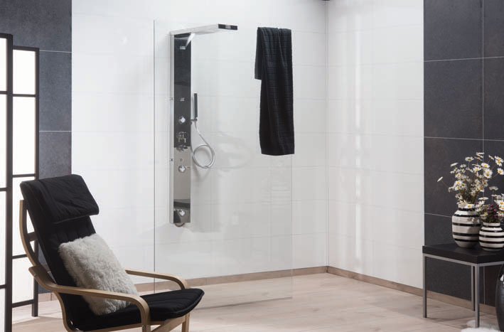 Panelene finnes i mer enn 750 varianter og monteres opp til 5 ganger raskere enn fliser. Det betyr betydelige kostnadsbesparelser. Med våre plater er det ingen søl med membran og lim, ettersom membranen er innebygd i selve platene.