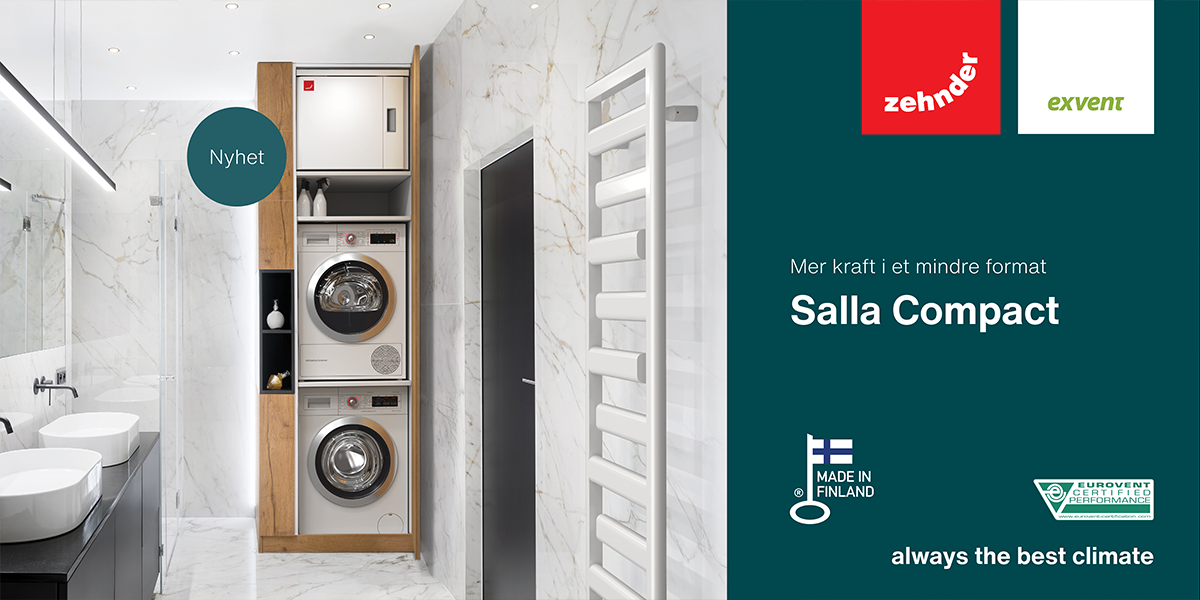 Med lanseringen av Salla Compact markerer Exvent Zehnder starten på et nytt kapittel. Vårt fornyede uttrykk speiler vår ambisjon om å kombinere nordisk presisjon, moderne design og bærekraftig kvalitet i produkter som gjør hverdagen enklere, sunnere og mer komfortabel – på minimal plass.