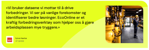 «Vi bruker dataene vi mottar til å drive forbedringer… EcoOnline er et kraftig forbedringsverktøy som hjelper oss å gjøre arbeidsplassen mye tryggere,»