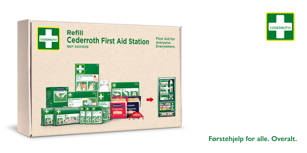 En påfylt Cederroth Førstehjelpsstasjon gjør det enkelt å handle raskt.