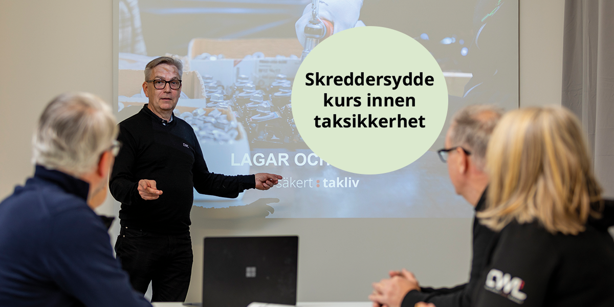 Våre kurs kan gjennomføres både hos oss, digitalt eller ute hos kunden. Innholdet dekker blant annet regelverk, riktig valg av produkter, optimal innfesting, planlegging av sikre takmiljø og effektiv bruk av våre løsninger i både planlegging og utførelse.
