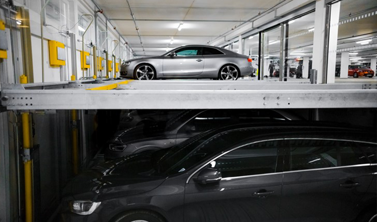Bilder fra ett av våre installerte parkeringsanlegg i Kristiansand (Combilift 542 – parkeringsløsning i to nivåer).