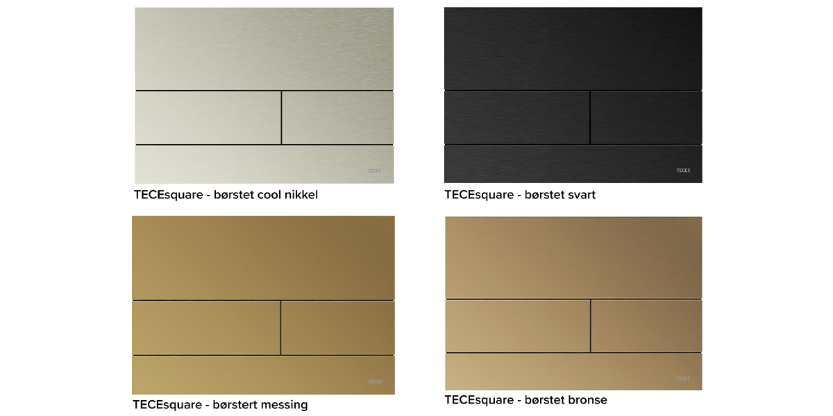 De nye overflatene er nikkel, bronse, messing og svart – alle med børstet finish. Det utvidede sortimentet gir større valgfrihet og gjør det enklere å koordinere betjeningsplaten med øvrige detaljer på badet.