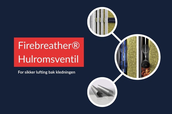 Firebreather® Hulromsventil er utviklet for å seksjonere hulrommet bak fasadekledning og hindre brannspredning mellom etasjer og konstruksjonsdeler. Ventilen tillater kontinuerlig lufting under normale forhold, men tetter lufteåpningene momentant ved brann.