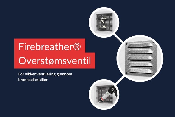Les mer om Firebreather® HulromsventilVentilering gjennom branncelleskiller er ofte krevende og løses tradisjonelt med kanalføringer og mekaniske brannspjeld. Firebreather® Overstrømsventil er et enkelt, kostnadseffektivt og helt passivt alternativ.