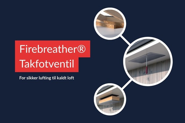 Firebreather® Takfotventil er godkjent for EI30 og gir en enkel og rimelig løsning for å kombinere kaldt loft og nødvendig lufting med effektiv brannsikring. Ventilen hindrer flammer og varme røykgasser i å trenge inn på loftet og reduserer risikoen for totalskade betydelig, både i nye og eksisterende bygg.