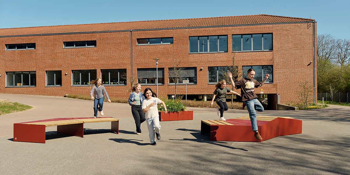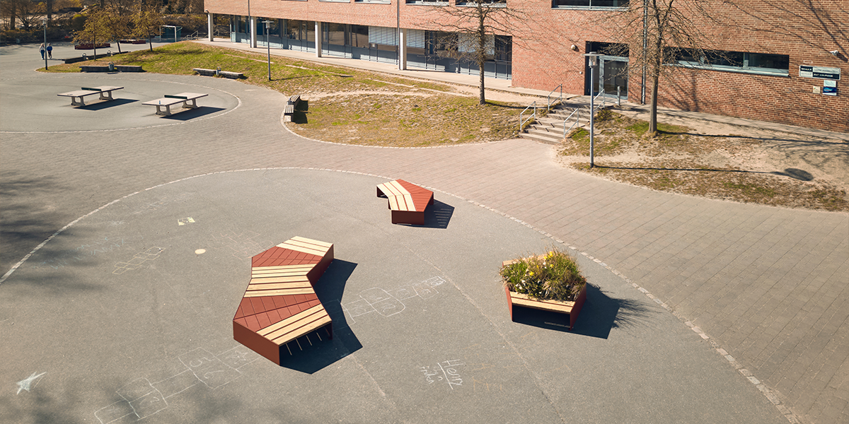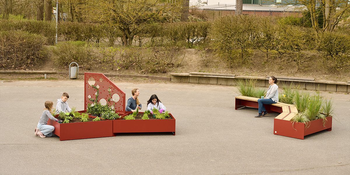UNITY er en møbelserie som forvandler skolegårder, campuser og bytorg til grønne, sosiale møteplasser.