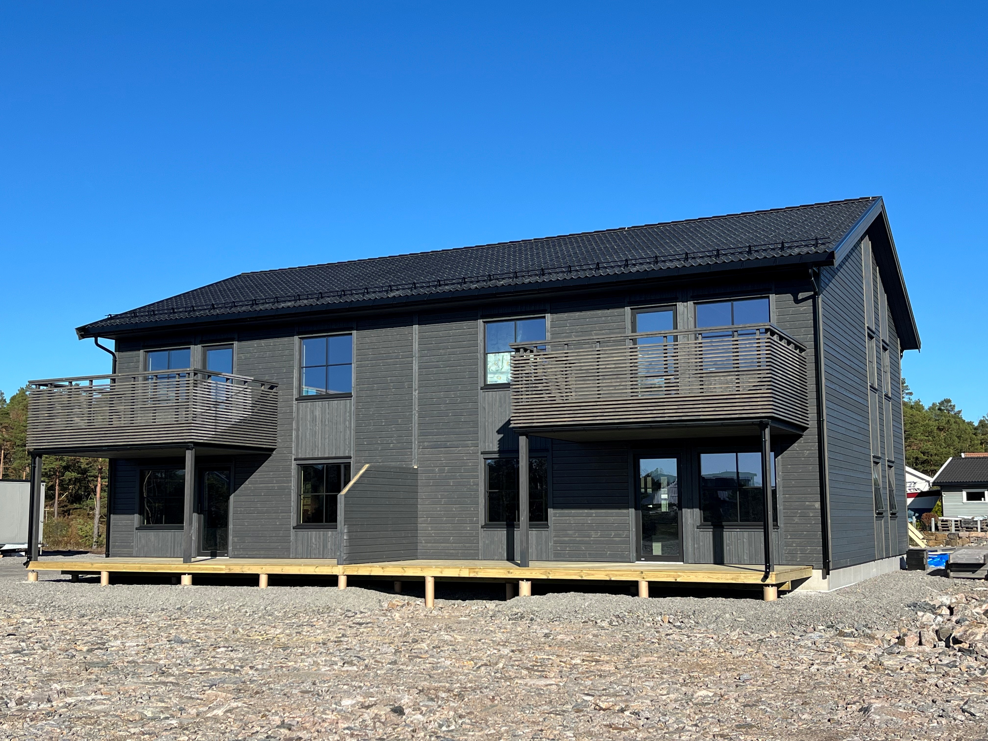 I Høvåg i Lillesand fortsetter vi det gode samarbeidet med RDH Utvikling. I skrivende stund er vi i ferd med å levere og montere fem rekkeboliger og en 8-mannsbolig. Som i tidligere prosjekter med RDH, leveres byggene med fokus på korte byggetider, høy kvalitet og løsninger som sikrer et gjennomført produkt med presisjon og leveringssikkerhet.