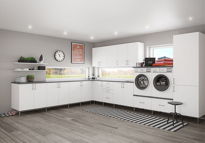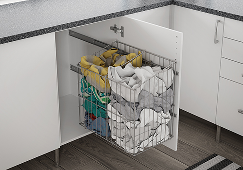 Det gjeld å tenke smart når ein skal innreie eit av husets viktigaste rom. Heve vaskemaskin og tørketrommel i arbeidshøgde, strykebrett ein kan folde ut ved behov og løysingar inne i skap som uttrekkbare hyller, skittentøyskorger, osv. Kva med eit hjørneskap for å utnytte den plassen og?