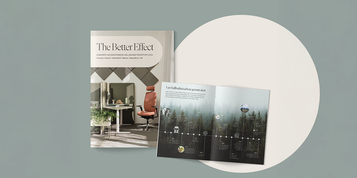 Det betyr møbler som varer lenge, materialer uten skadelige stoffer, lavere utslipp og bedre forhold hos leverandørene. Samtidig bidrar løsningene våre til miljøer som fremmer helse og trivsel.