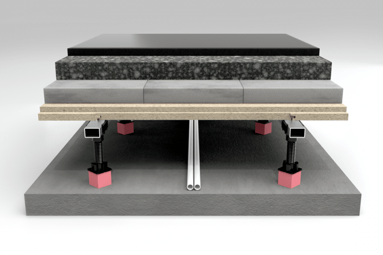 VT-dBlock fra Vibratec er et justerbart gulvsystem med innebygget lyddemping som er enkelt og raskt å installere.